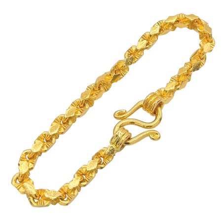 24K Yellow Gold 5MM Nugget Link Bracelet