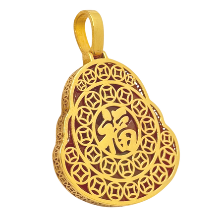 Red Jade Buddha w/ 18K Money Coin Wrap