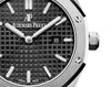 Dial: Black dial with “Grande Tapisserie” pattern, white gold applied hour-markers and Royal Oak hands with luminescent coating.