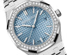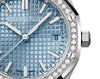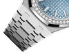 Dial: Light blue dial with “Grande Tapisserie” pattern, white gold applied hour-markers and Royal Oak hands with luminescent coating.