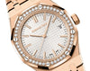 Dial: Silver-toned dial with “Grande Tapisserie” pattern, pink gold applied hour-markers and Royal Oak hands with luminescent coating.