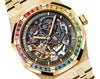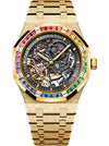 Dial: Openworked slate grey dial, yellow gold applied hour-markers and Royal Oak hands with luminescent coating