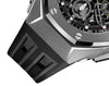Bracelet: Black and grey rubber strap with titanium AP folding clasp and interchangeable strap system. Additional black rubber strap.