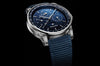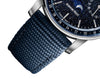 Bracelet: Blue rubber-coated strap with 18K White Gold AP folding clasp.