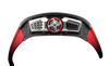 Regardless of whether a particular RM model is slim or solid, its shape ensures optimal comfort, never interfering with the owner’s physical movements. Form and function are addressed in yet another manner with the RM 70-01. Machined from Carbon TPT®, the case of the RM 70-01 perfectly combines tonneau, rectangular and asymmetrical shapes. Both taut and curved, its unique lines not only ensure the greatest possible comfort on the wrist, but also optimised legibility when gripping a cycle’s handlebars. As always at Richard Mille, function dictates form. Top view Right view Back view Left view.