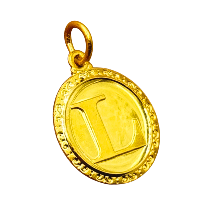 24K Yellow Gold Letter "L" Circle Pendant