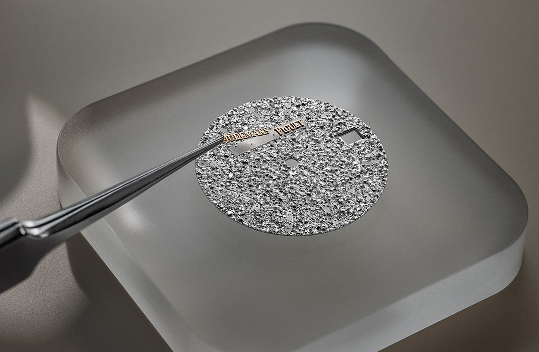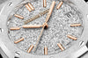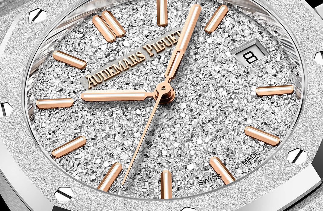 Dial: Rhodium-plated crystal sand finished dial, pink gold applied hour-markers and Royal Oak hands with luminescent coating.