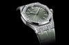 Bracelet: Pearly green “large square scale” alligator strap with 18K White Gold AP folding clasp set with brilliant-cut diamonds.