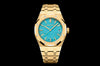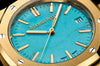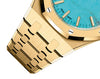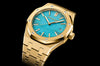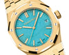 Dial: Turquoise dial, yellow gold applied hour-markers and Royal Oak hands with luminescent coating.