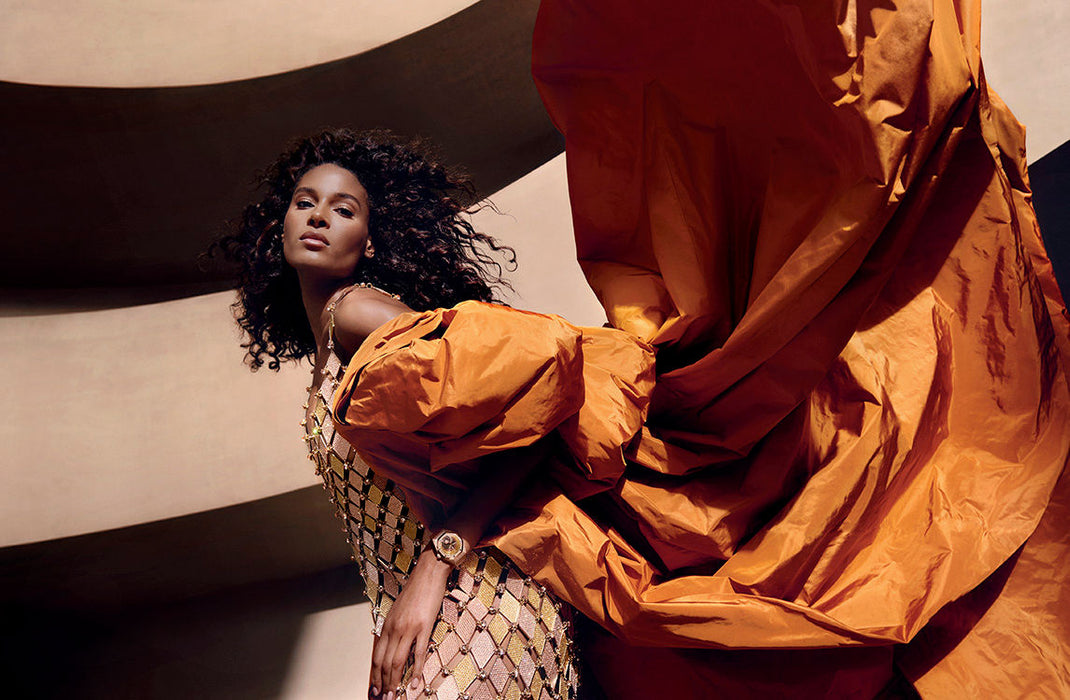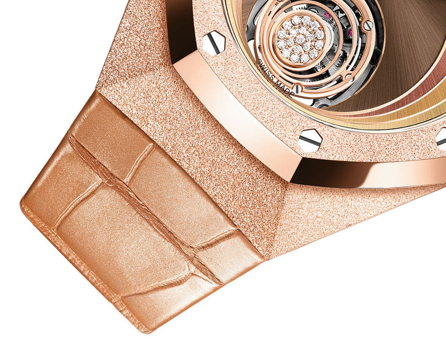 Dial: Satin-brushed brown, bronze, pink gold and yellow gold-toned layers on dial, pink gold hands with luminescent coating.
