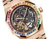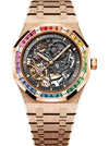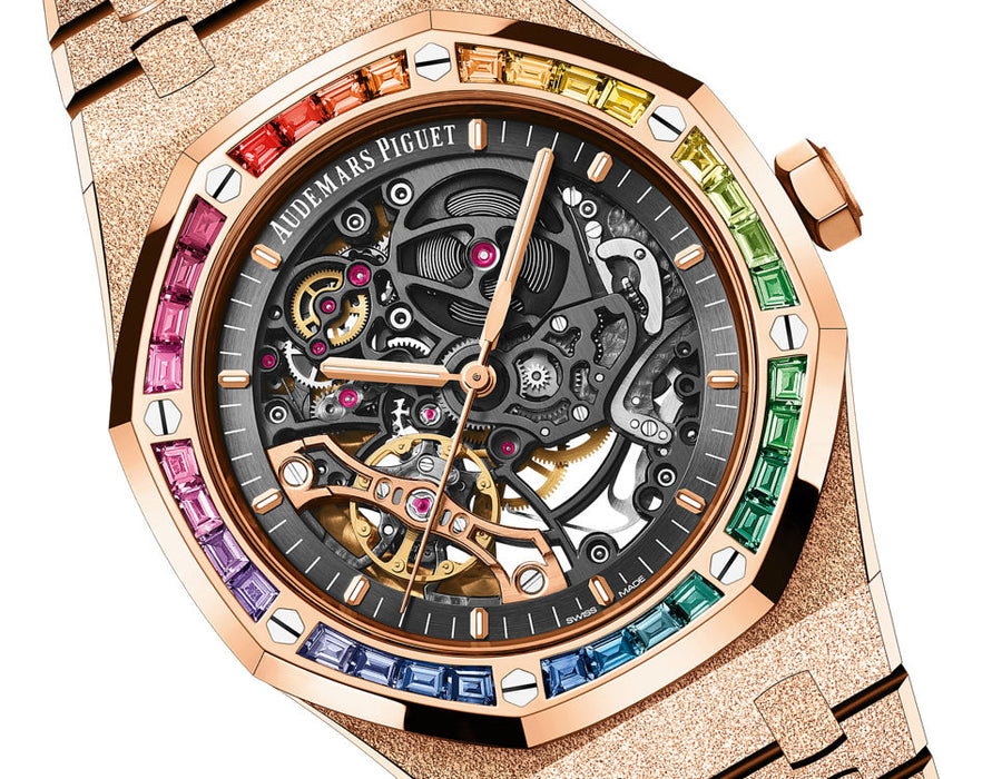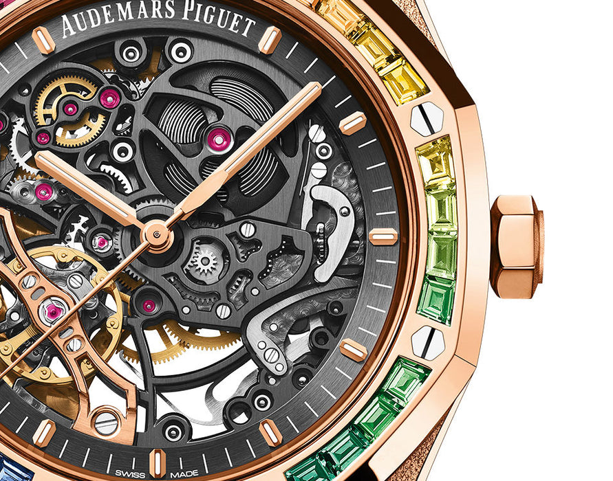 Dial: Openworked slate grey dial, pink gold applied hour-markers and Royal Oak hands with luminescent coating