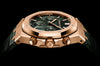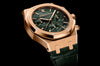 Bracelet: Khaki green alligator strap with 18K Rose Gold AP folding clasp.
