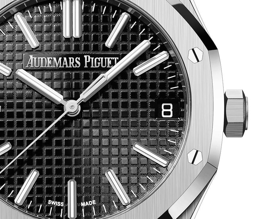 Dial: Black dial with “Grande Tapisserie” pattern, white gold applied hour-markers and Royal Oak hands with luminescent coating.