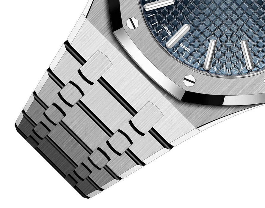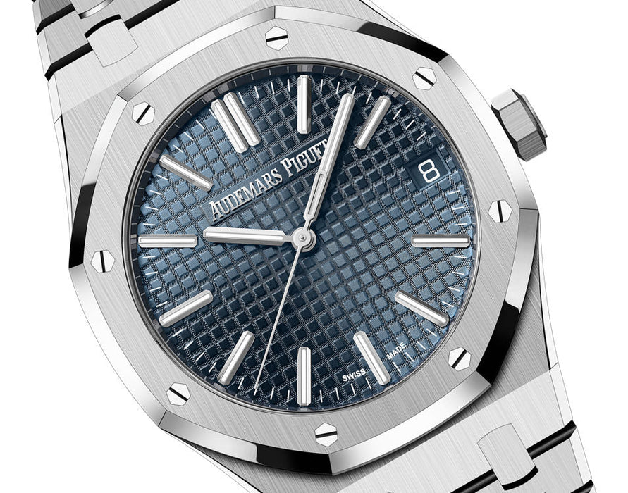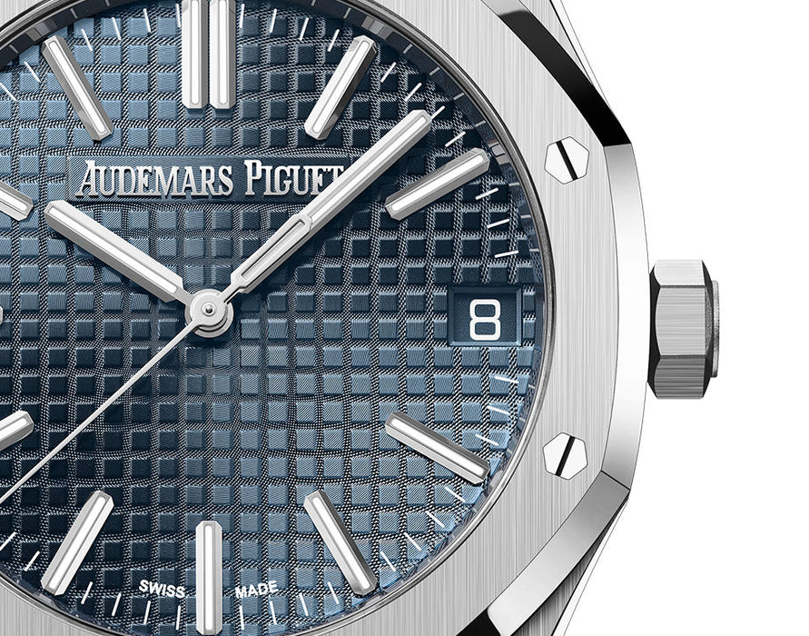 Dial: “Bleu nuit nuage 50” dial with “Grande Tapisserie” pattern, white gold applied hour-markers and Royal Oak hands with luminescent coating.