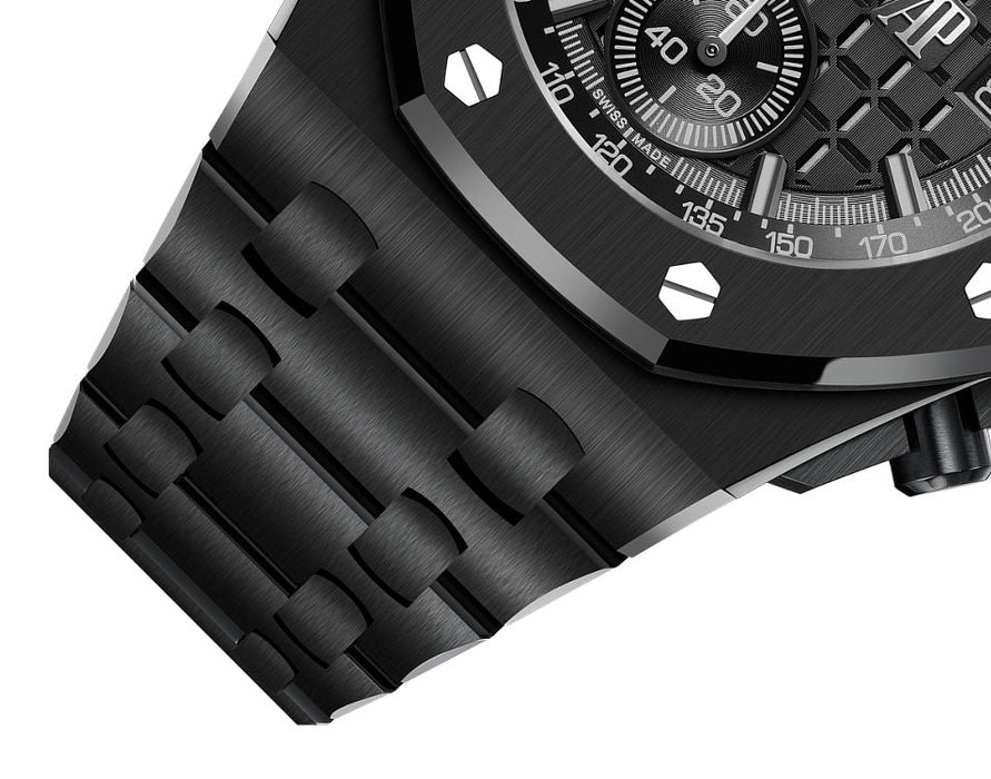 Bracelet: The integrated Black Ceramic bracelet features the new invisible pin design, fitted with a titanium AP folding clasp.