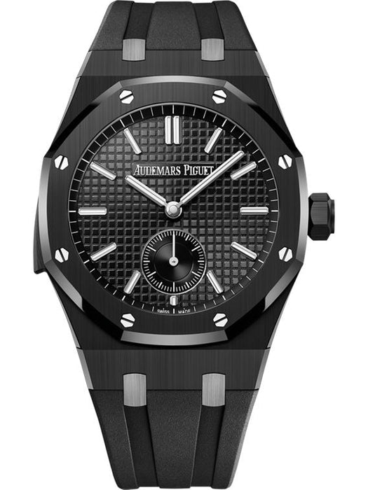 Dial: Black dial with “Grande Tapisserie” pattern, white gold applied hour-markers and Royal Oak hands with luminescent coating.
