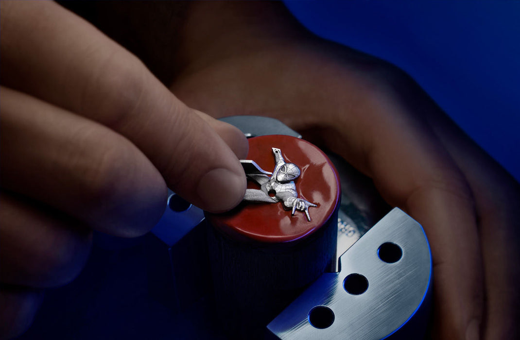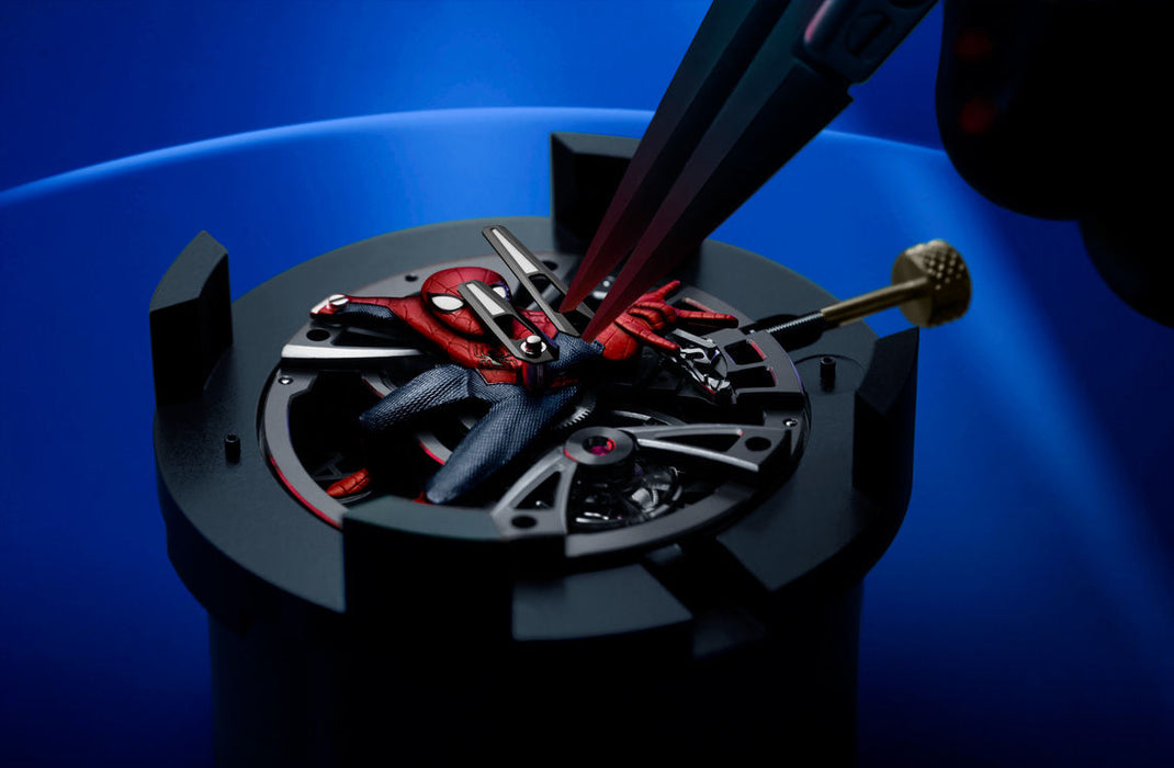 Dial: Openworked dial with "Spider-Man" figure, white gold hour-markers and hands with luminescent coating.