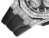 Bracelet: Black rubber strap with 18K White Gold AP folding clasp set with baguette-cut diamonds.