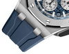 Bracelet: Blue rubber strap with titanium AP pin buckle and interchangeable strap system. Additional black rubber strap