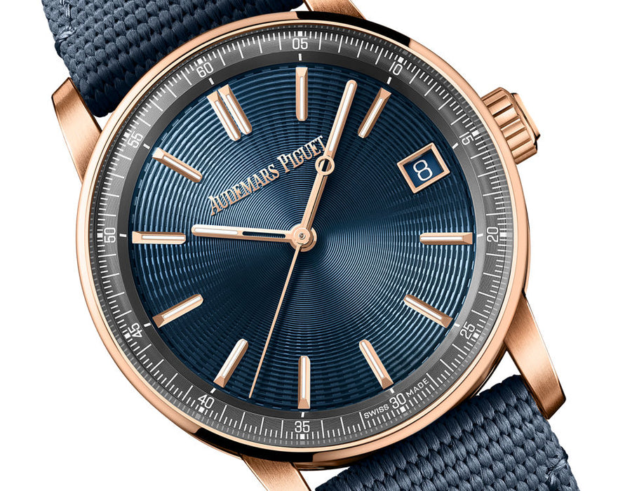 Dial: “Bleu nuit, Nuage 50” dial, pink gold applied hour-markers and hands with luminescent coating, grey inner bezel.