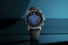 Dial: Smoked blue lacquered dial with sunburst pattern, white gold applied hour-markers and hands, black lacquered inner bezel.