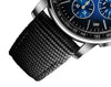 Bracelet: Black rubber-coated strap with 18K White Gold pin buckle.
