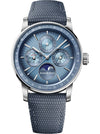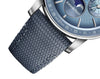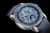 Dial: The smoked blue embossed dial combines a matching inner bezel and tone-on-tone subdials with 18K White Gold hour-markers and 18K White Gold hands with luminescent material.