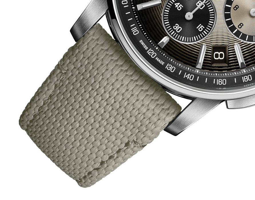 Dial: Smoked beige dial, beige counters and black external zone, black counter at 6, white gold hour-markers and hands with luminescent coating, black inner bezel.