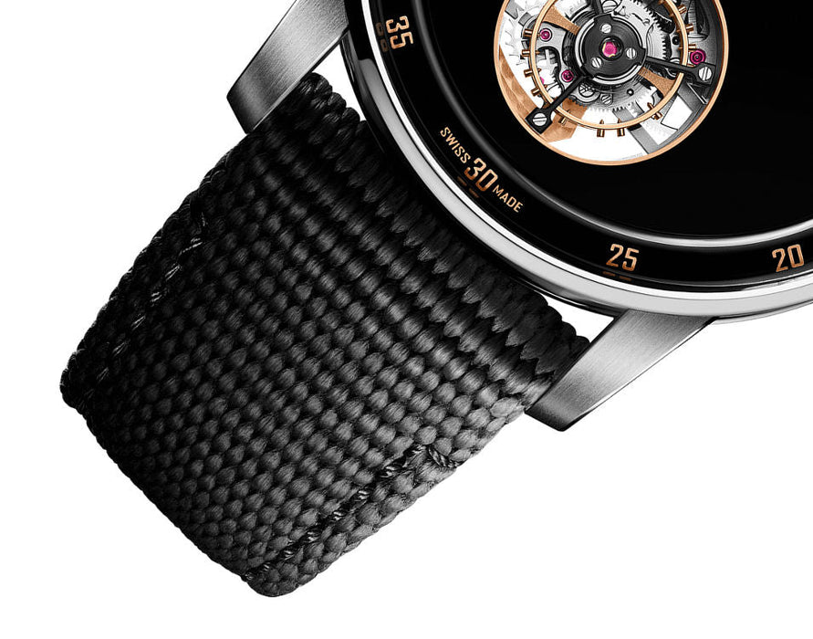 Bracelet: Black rubber-coated strap with 18K White Gold AP folding clasp.