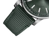 Bracelet: Green rubber-coated strap with Stainless Steel pin buckle.