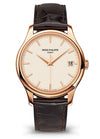 Case: Rose gold. Case diameter: 39 mm. Height: 9.24 mm. Water-resistant to 30 m. Sapphire crystal case back protected by an invisibly-hinged dust cover.