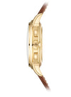 Bracelet/Strap: Alligator leather with square scales, hand-stitched, matte chocolate brown. Fold-over clasp.