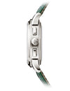 Bracelet/Strap: Alligator leather with square scales, hand-stitched, shiny bottle green. Fold-over clasp.
