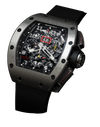 Calibre RMAS7 Skeletonised automatic movement with hours, minutes, date and variable-geometry rotor. The introduction of the RM 005 automatic timepiece in 2004 was one of the first successes for the brand on a global scale. Times change quickly however, and by 2006, market tastes were already turning to larger case sizes, which led to the creation of the RM 010, which measured 48 mm x 39. 30 mm x 13.